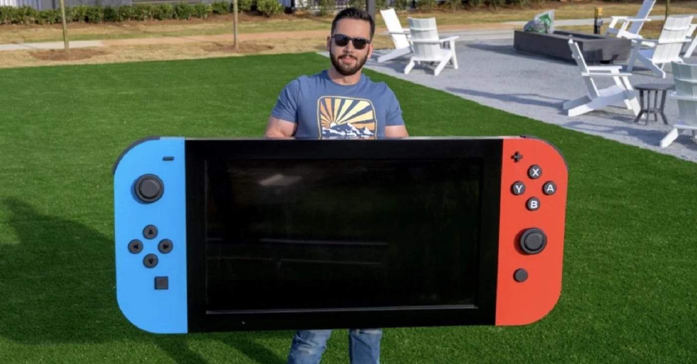 Engenheiro constrói maior Nintendo Switch do mundo. Imagem: Michael Pick/Reprodução