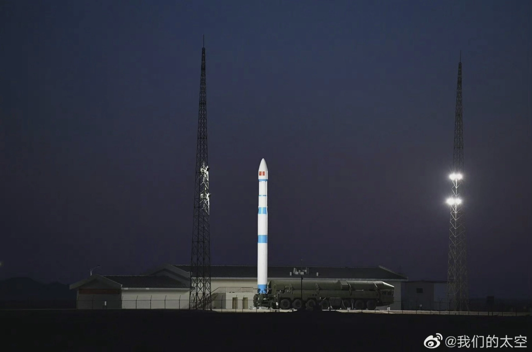 Foguete Kuaizhou-1A, horas antes do lançamento, no Centro de Lançamento de Satélites de Jiuquan. Imagem: ExPace - Corporação de Ciência e Indústria Aeroespacial da China (CASIC)