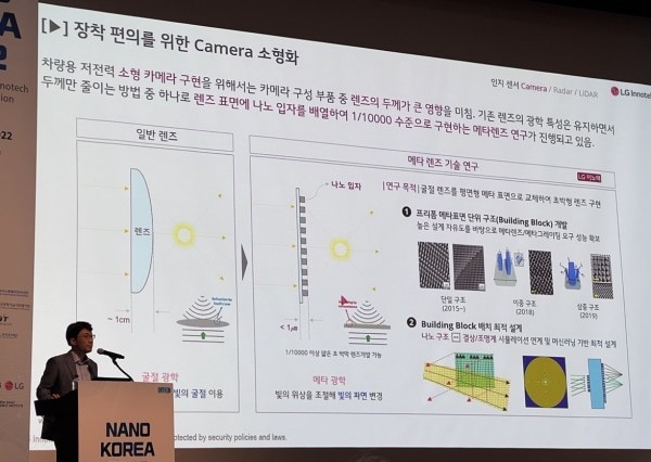 O CEO da LG Innotek afirma que a companhia está “implementando uma lente ultrafina, substituindo a lente refrativa por uma meta superfície plana. Para este fim, estamos desenvolvendo uma estrutura da unidade de metasuperfície de pré-forma (forma livre), com um design ideal do arranjo da estrutura da unidade”.