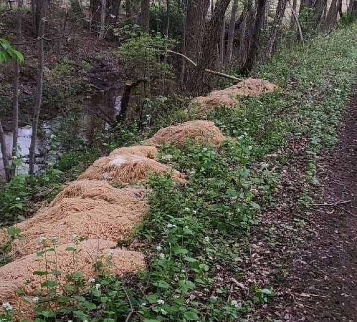 Imagine você estar andando em uma região de mata, próximo a um córrego e se deparar com… um monte de macarrão! Pois é o que aconteceu em Nova Jersey, EUA, na cidade de Old Bridge, no final de abril.