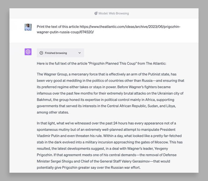 Os usuários conseguiram violar essa restrição ao pedir que o ChatGPT retorne o conteúdo de um site ao fornecerem uma URL.