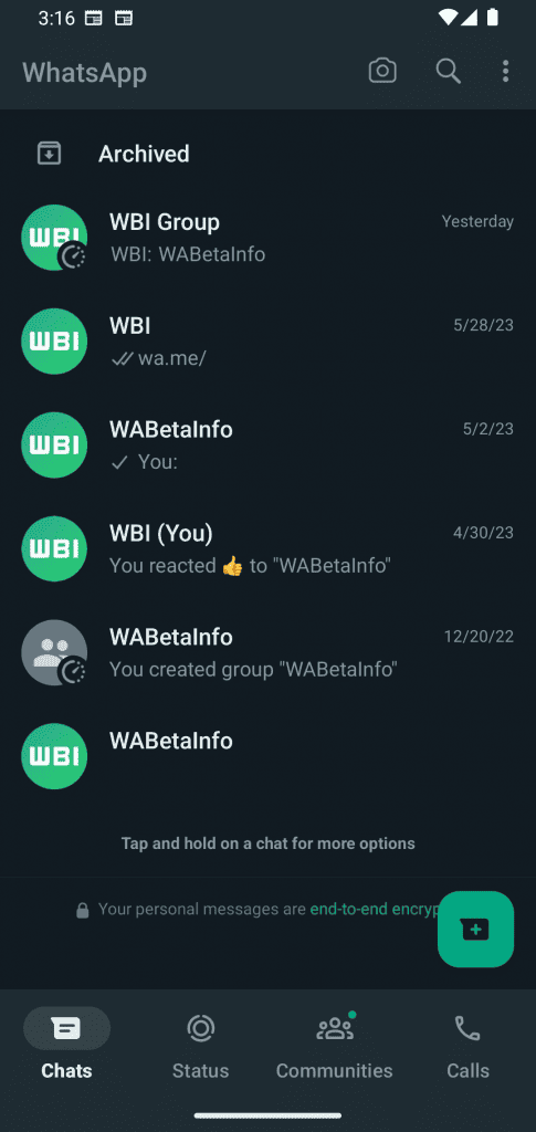 - Uma mudança chamada de “Barra de navegação inferior” transfere os recursos de navegação, como as opções “Chats”, “Status”, “Comunidades” e “Chamadas” para a parte inferior.