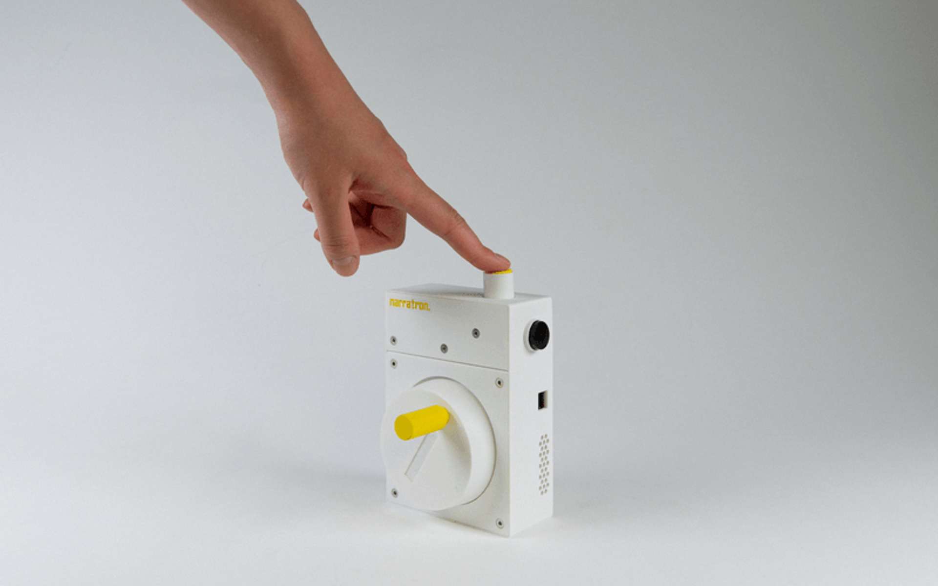 Com um design minimalista, mas elegante e funcional, o Narratron tem um número limitado de entradas e botões. No topo do dispositivo, há um botão que serve como controle principal para captura das sombras.