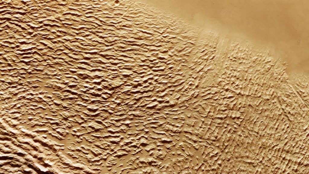 A superfície de Marte exibe uma variedade de tonalidades. Geralmente ela é associada a tons de vermelho ou laranja.