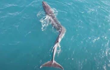 A baleia com escoliose foi avistada no sábado, 11, por marinheiros que acharam que ela estava presa em meio a redes de pesca