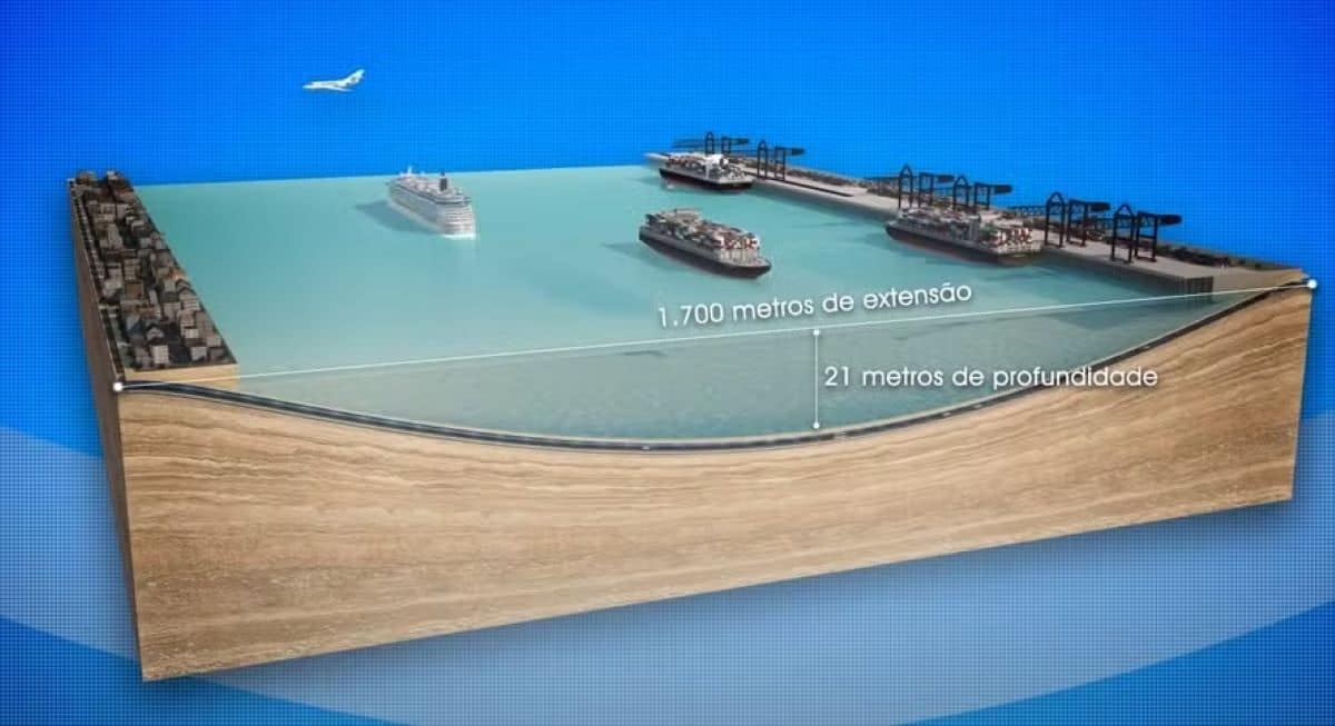 Um desafio da obra é sua profundidade. Como vai passar por baixo do canal do Porto de Santos, o túnel vai ter uma profundidade mínima de 21 metros. Para viabilizar isso, serão construídos seis módulos pré-moldados com concreto armado, que vão precisar ser transportados até o local. Isso tudo sem interromper o fluxo de navios no porto de santos.