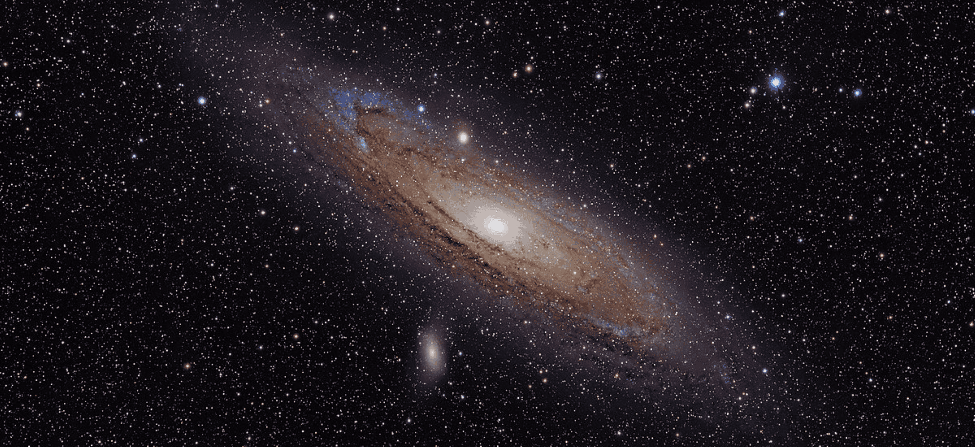 Andrômeda é uma verdadeira celebridade no mundo da astronomia, tanto entre os profissionais quanto entre amadores. A “apenas” 2,5 milhões de anos-luz de distância, e com cerca de 200 mil anos-luz de diâmetro, ela se torna um alvo fácil para telescópios, mesmo os mais modestos, proporcionando um espetáculo visual de tirar o fôlego. É importante dizer que observar Andrômeda é como contemplar uma janela para o passado. Graças à distância em que ela está de nós, a musa que observamos por essa janela, hoje está uns 2 milhões e 500 mil anos mais velhinha. Mas certamente, continua linda!