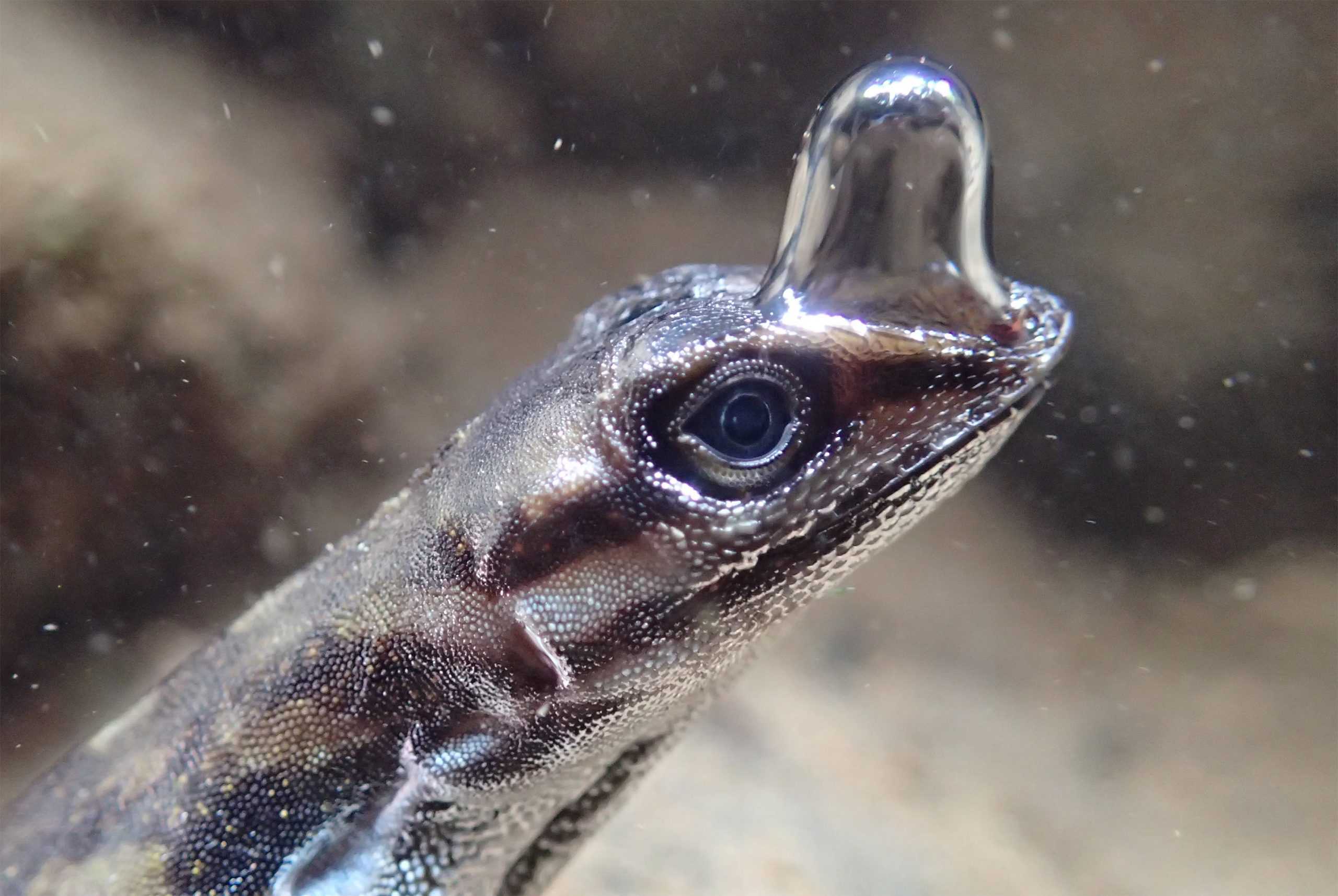 Swierk observou que esses lagartos, quando ameaçados, mergulham e formam uma bolha de ar sobre suas cabeças para respirar. No entanto, não estava claro se essa bolha tinha um papel funcional ou se era um simples efeito colateral das propriedades da pele do animal.