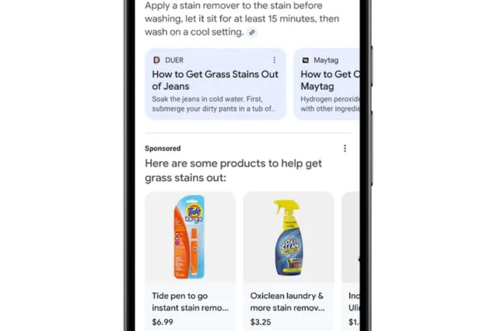 Por exemplo, ao buscar dicas para remover mancha de grama das calças, a resposta gerada por IA incluirá dicas e sugestões de produtos úteis. Esses anúncios aparecerão sob cabeçalho “patrocinado” e, segundo o porta-voz Craig Ewer, serão exibidos apenas quando a consulta tiver “ângulo comercial”.