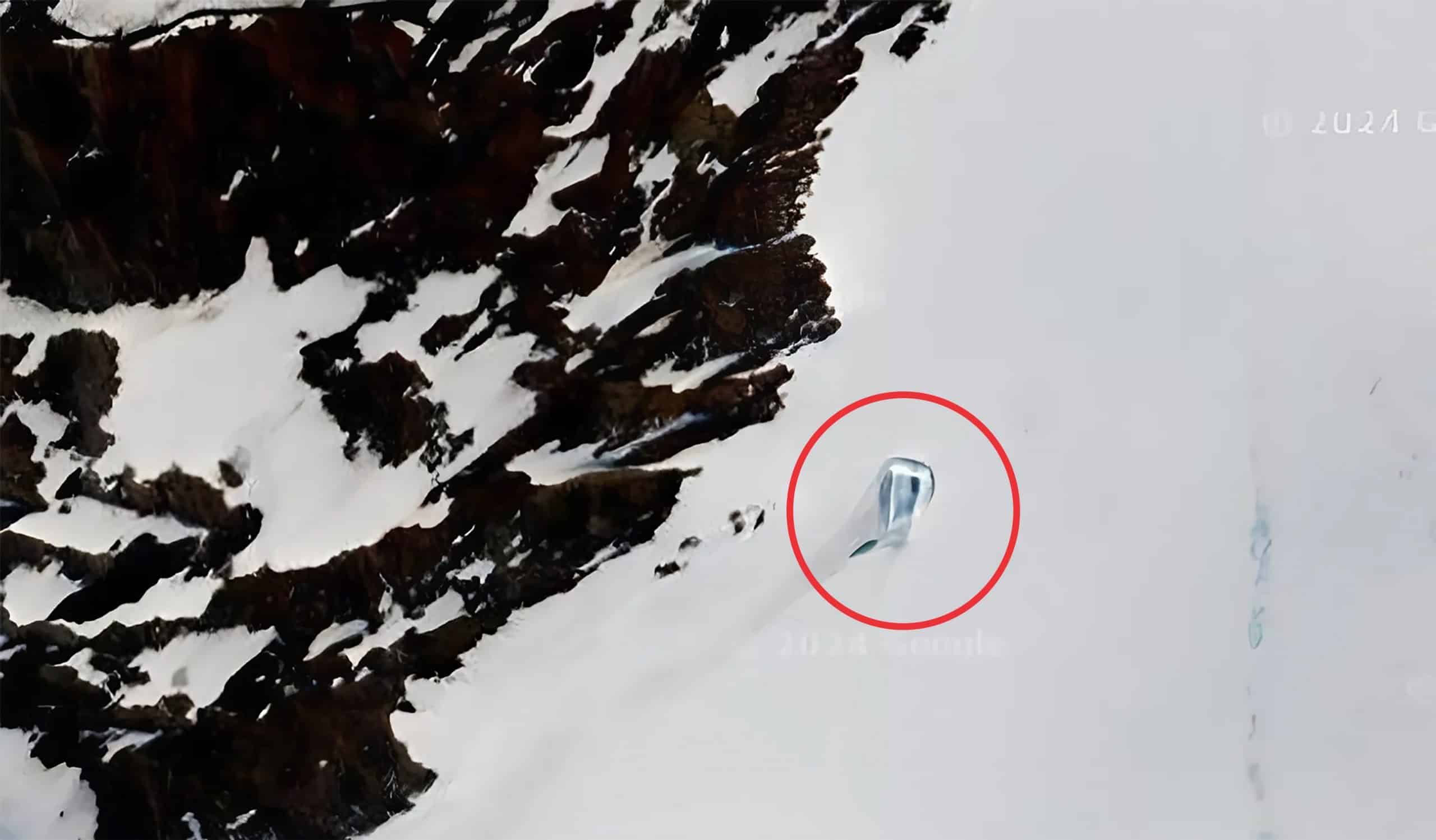 Flagrada em março, a "porta" vista na Antártica levantou polêmicas na internet. Crédito: Google Earth