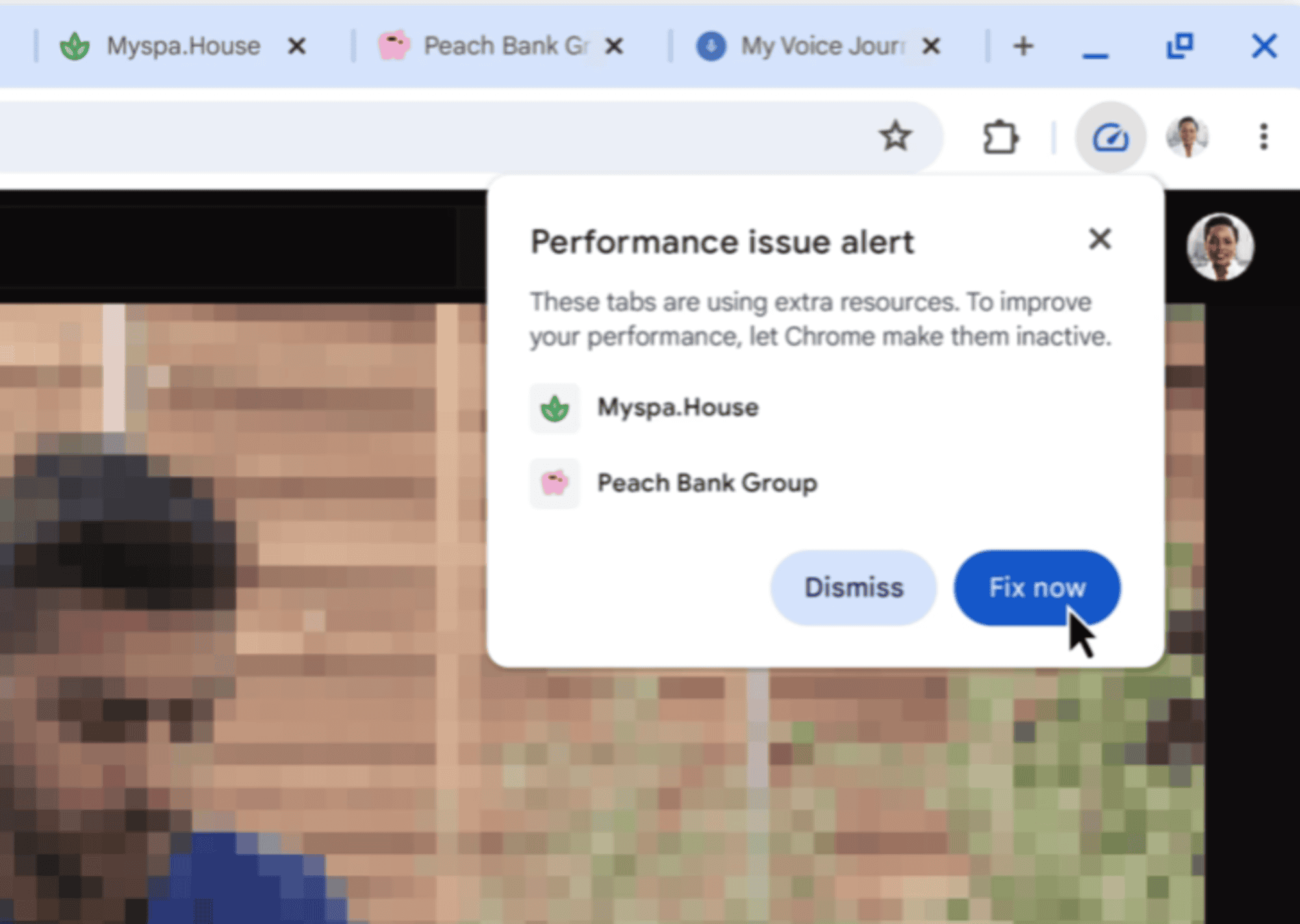 Exemplo de alerta de desempenho do Chrome (Imagem: Google/Reprodução)