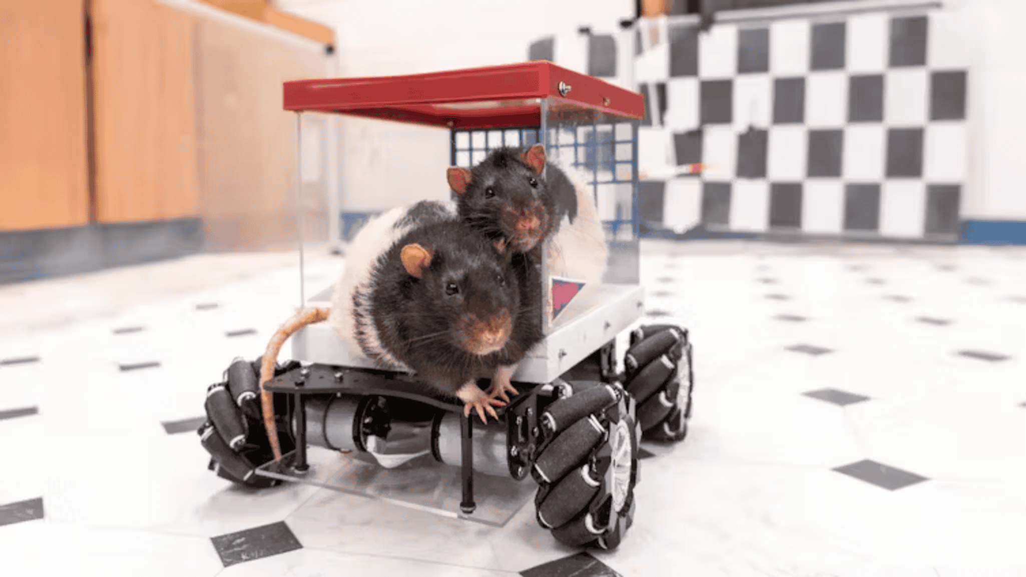Uma neurocientista criou um pequeno carro usando um recipiente de plástico. Após várias tentativas e erros, ela descobriu que os ratos podiam aprender a dirigir segurando um pequeno fio que funcionava como um pedal de acelerador.