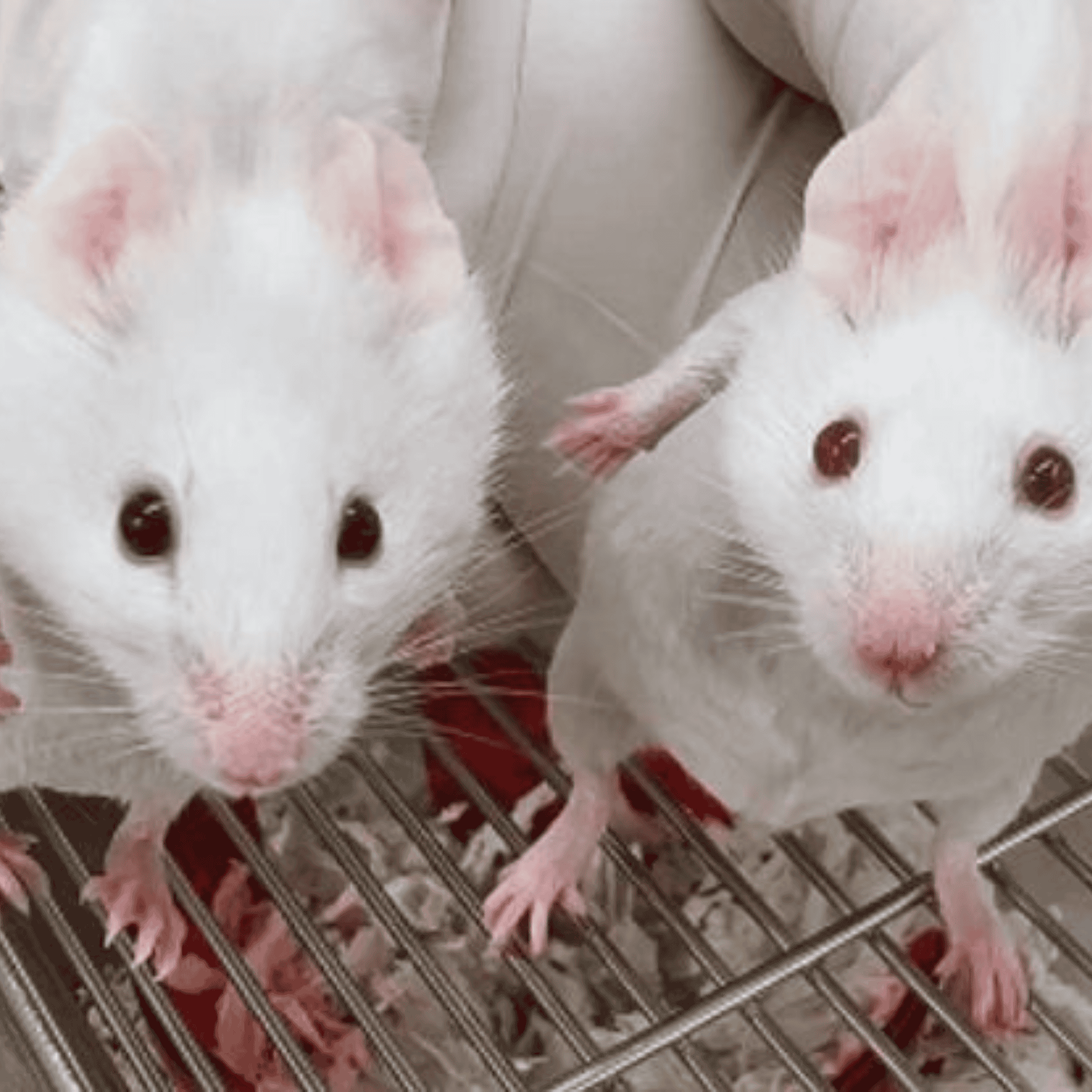 O rato modificado (à esquerda) tem olhos escuros, em comparação com os olhos vermelhos do rato selvagem (à direita). Imagem: Gao Ya e Alvin Kin Shing Lee