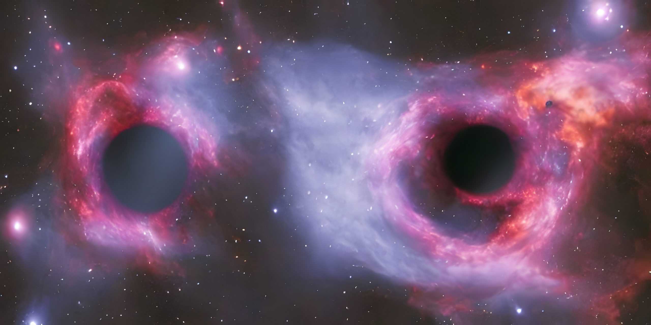 Representação artística de dois buracos negros atravessando uma nuvem de gás. Crédito: Roman99 - Shutterstock