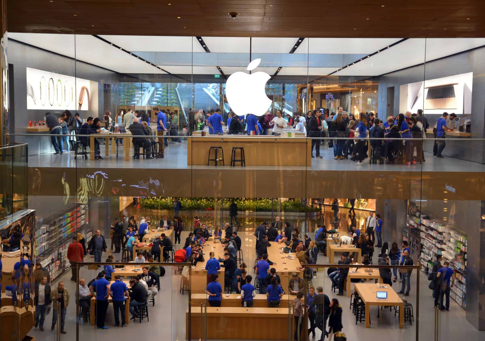 A ameaça de tarifas de 54% sobre os iPhones fabricados na China provocou uma queda nas ações da Apple, mas também gerou uma corrida aos seus pontos de venda, como mostra uma matéria da Bloomberg.
