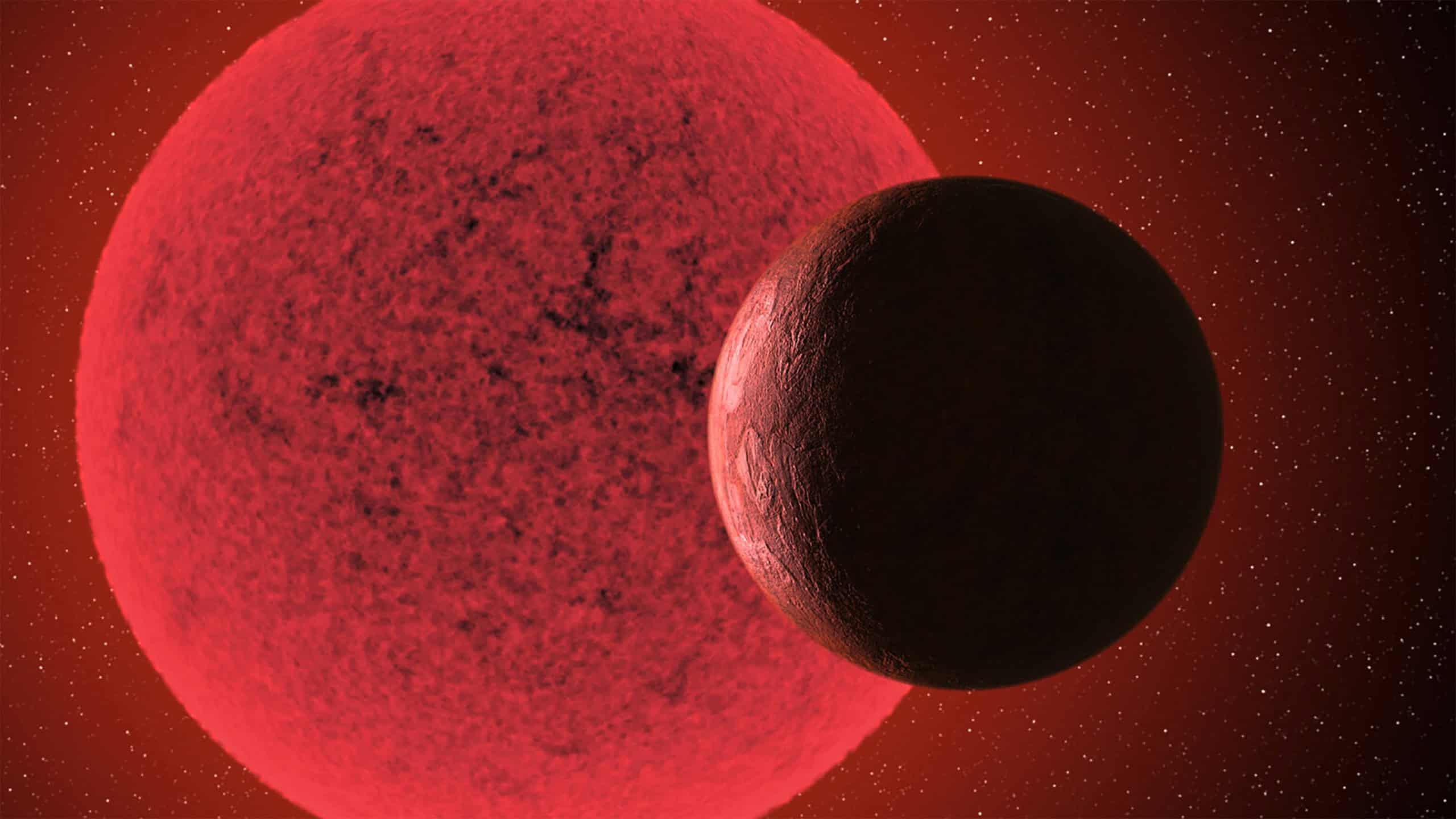Representação artística de um planeta superterra na órbita de uma estrela anã M. Crédito: Gabriel Pérez Díaz/Instituto de Astrofísica de Canarias
