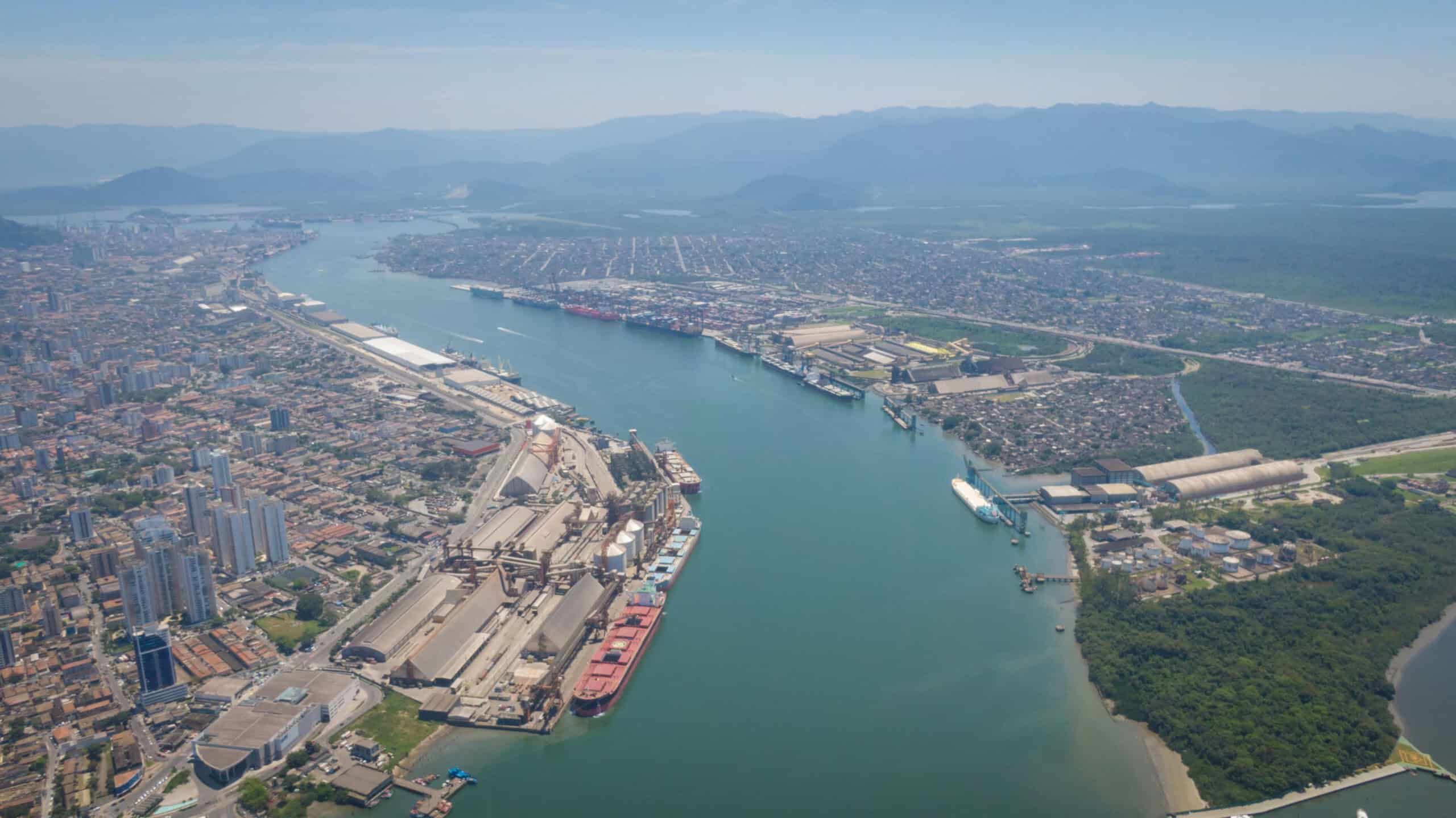 Visão aérea da região onde túnel entre Santos e Guarujá será construído (Imagem: Reprodução/Governo federal)