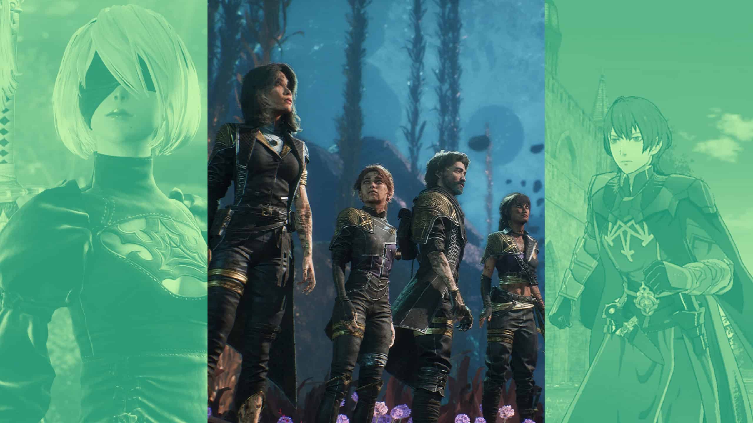 Crédito: Nier: Automata (Platinum e Square Enix), Clair Obscur (Sandfall e Kepler interactive) e Fire Emblem: Three Houses (Intelligent Systems, Kou Shibusawa,)