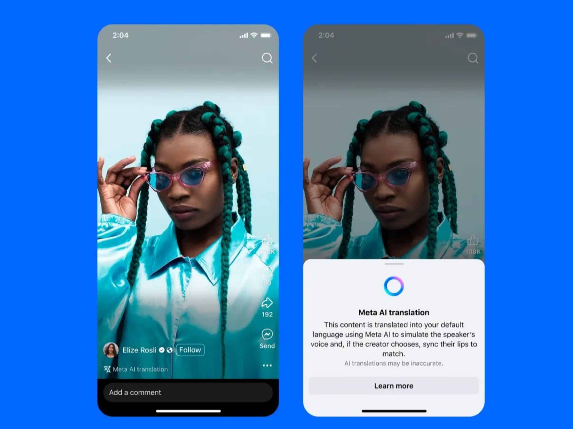 A Meta anunciou nesta terça-feira (19) o lançamento global de um recurso de tradução de voz com inteligência artificial para criadores no Facebook e Instagram.