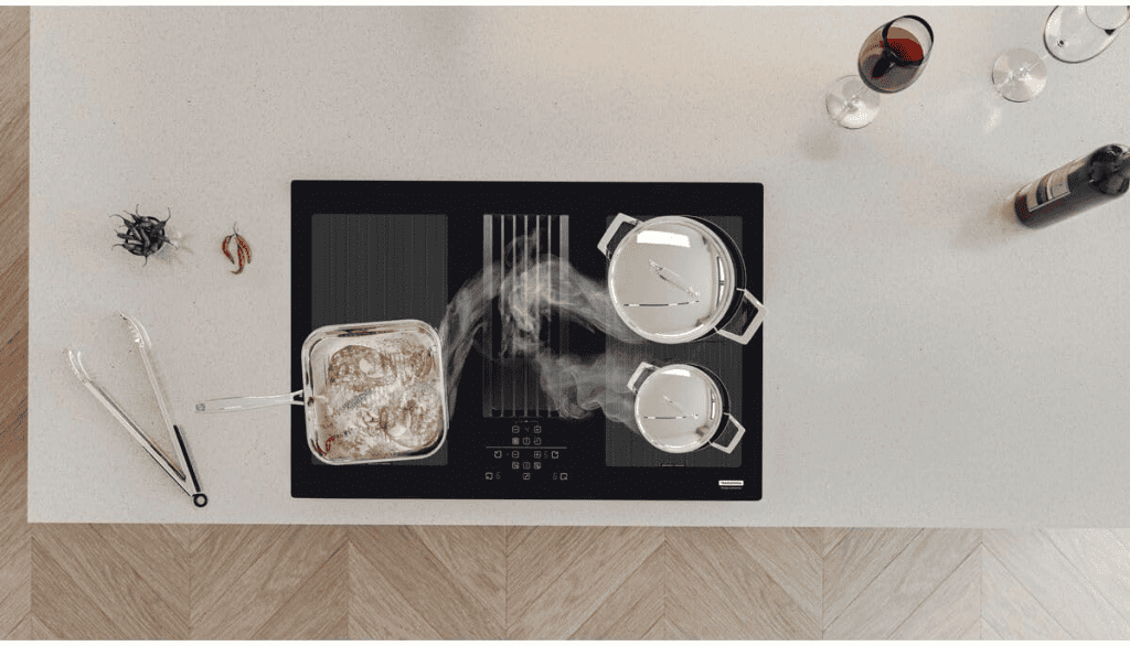 Este modelo é para quem está disposto a investir mais pesado por algo diferenciado. Aqui, além do cooktop por indução, há uma coifa integrada no aparelho, o que economiza espaço e oferece uma solução estética e prática para quem não quer fazer a instalação de um exaustor separadamente. A qualidade dos materiais, acabamento e tecnologias costumam ser de alto padrão.