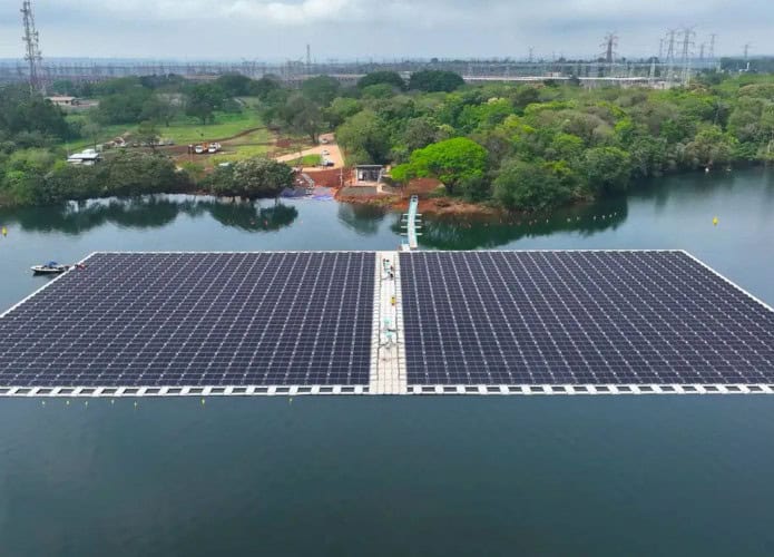 O projeto-piloto de Itaipu consiste numa “ilha solar” montada sobre o reservatório do Rio Paraná.
