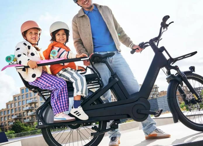 A e-bike long-tail foi projetada para transportar crianças, compras e equipamentos, combinando praticidade, segurança e conforto em um único modelo. Imagem: Divulgação/Urban Arrow
