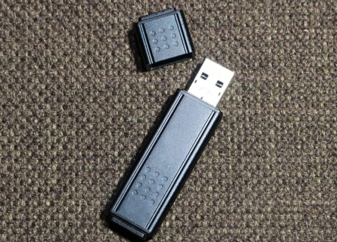 um pendrive sem tampa em cima de uma superfície com textura