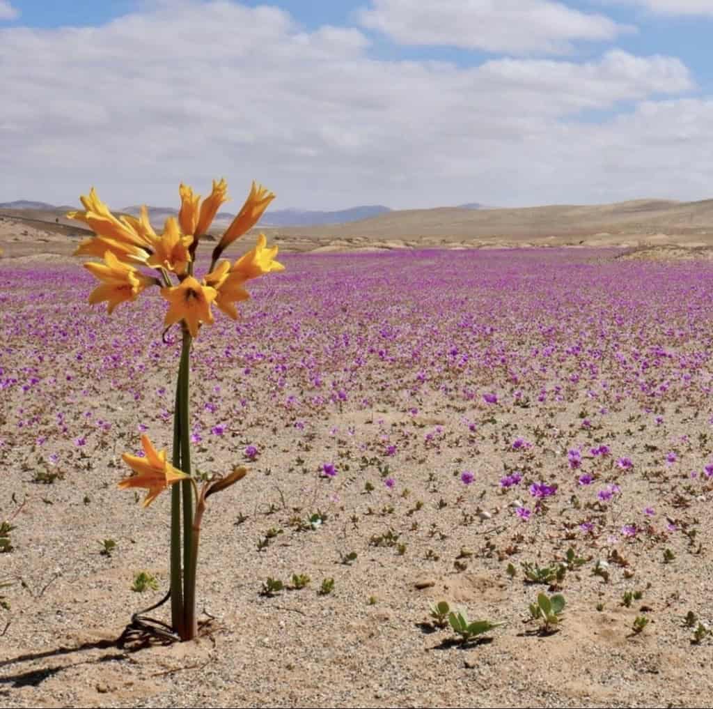 O deserto do Atacama tem cerca de mil km de extensão, sendo considerado o mais alto e árido do planeta. Nestas condições, é difícil imaginar a presença de flores no local. No entanto, elas foram avistadas por uma extensão de vários quilômetros.