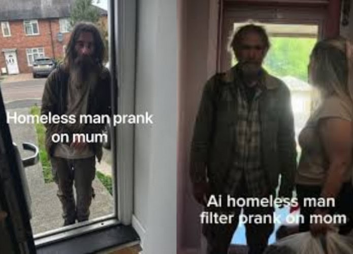 A ideia é simples, mas o estrago é grande. Os adolescentes usam filtros e programas de edição de imagem (como no Snapchat) para criar fotos muito reais de um homem com aparência de morador de rua dentro de casa. Eles mostram a foto aos pais, inventando uma história: disseram que deixaram o “estranho” entrar para usar o banheiro ou beber água, e que ele até alegou conhecer os pais do trabalho.