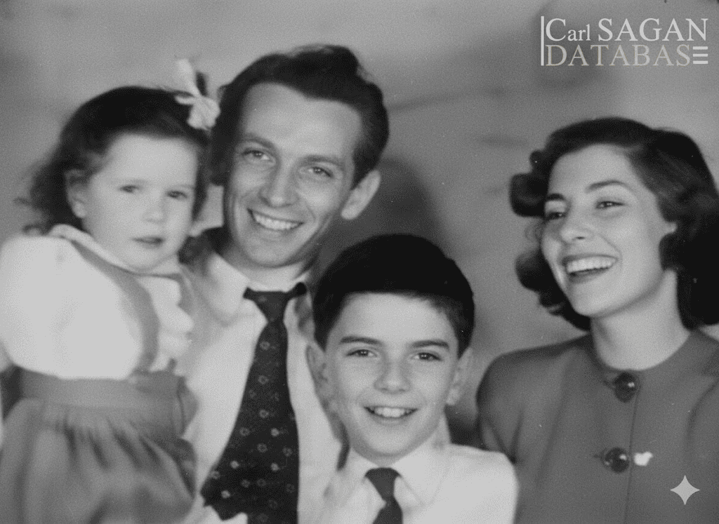 Carl Edward Sagan nasceu em 1934, no bairro do Brooklyn, em Nova York, em uma família simples, mas repleta de afeto. Seu pai, Samuel, era operário têxtil; sua mãe, Rachel, dona de casa — ambos judeus, filhos de imigrantes. Viviam modestamente, mas com muito amor, e com a consciência do poder transformador da educação e da curiosidade de uma criança.