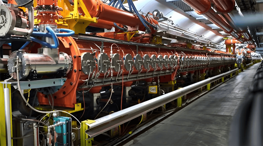 De forma simplificada, um acelerador de partículas é uma máquina projetada para pegar partículas subatômicas – como prótons e elétrons – e acelerá-las a velocidades próximas à da luz. O princípio por trás dessa proeza é a utilização de campos elétricos e magnéticos. Pense nos campos elétricos como uma série de “empurrões” que aumentam a velocidade das partículas. À medida que as partículas carregadas passam por cavidades de radiofrequência, elas recebem pulsos de energia que as impulsionam para frente.