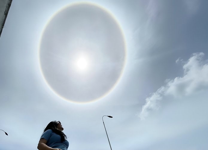 Fenômeno óptico forma anel em torno do Sol no céu do Acre