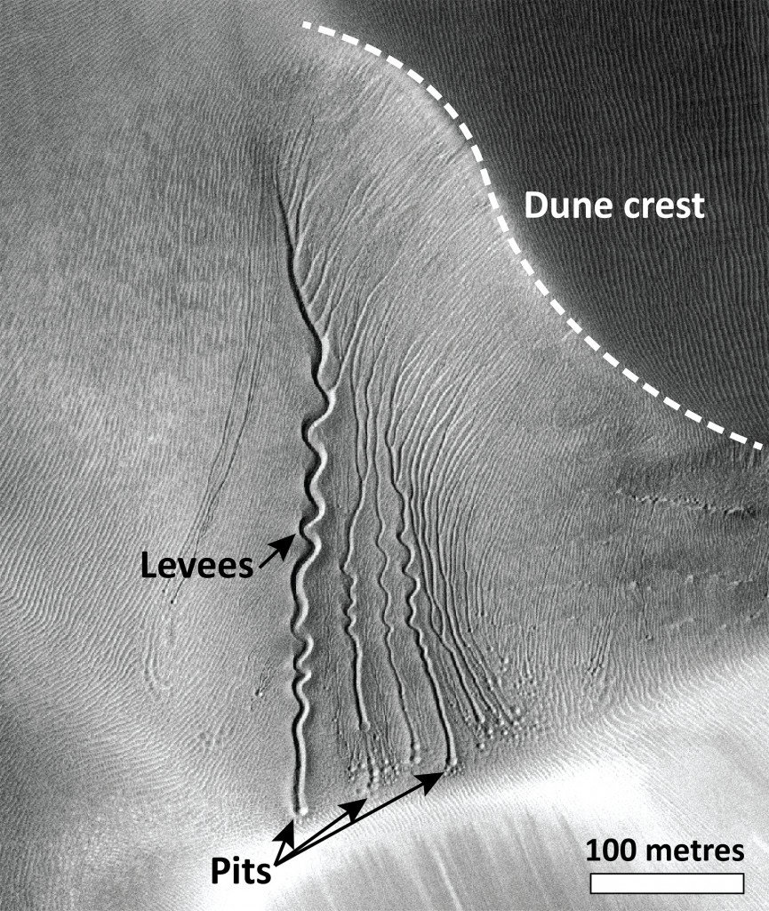 Uma pesquisa liderada pela cientista da Terra Lonneke Roelofs, da Universidade de Utrecht, Holanda, desvendou o enigma por trás das misteriosas ravinas encontradas nas dunas de Marte.