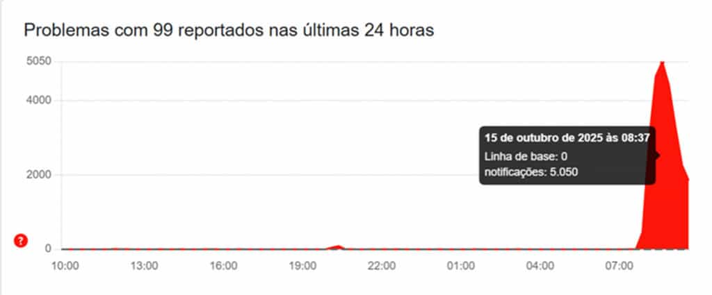No Downdetector, site que monitora o funcionamento de plataformas e aplicativos, as reclamações começaram por volta das 7h50 (horário de Brasília) e atingiram um pico às 8h37, com 5.050 registros.