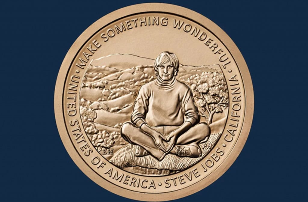 Agora, ele estampará uma moeda de US$ 1 comemorativa. A imagem escolhida é Jobs enquanto jovem, sentado de pernas cruzadas em frente a uma paisagem cheia de colinas na Califórnia (segundo a própria Casa da Moeda). E ele está vestindo uma blusa de gola alta, sua marca registrada.