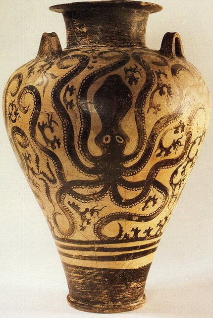 Cerâmica grega do século XV a.C. com a ilustração de um polvo. (Imagem: Museu Nacional de Atenas)