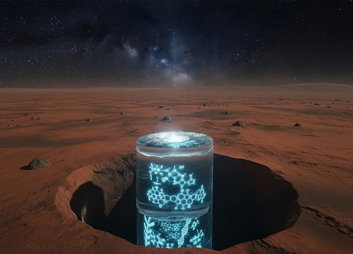Segundo a pesquisa, fragmentos de moléculas microbianas antigas teriam o potencial de sobreviver no gelo marciano por dezenas de milhões de anos – tempo suficiente para que futuras missões espaciais possam abrir essa “cápsula do tempo” e localizá-las.