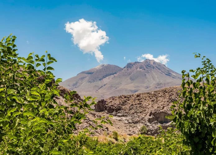 - Tipo: estratovulcão ativo do arco vulcânico continental de Makran.