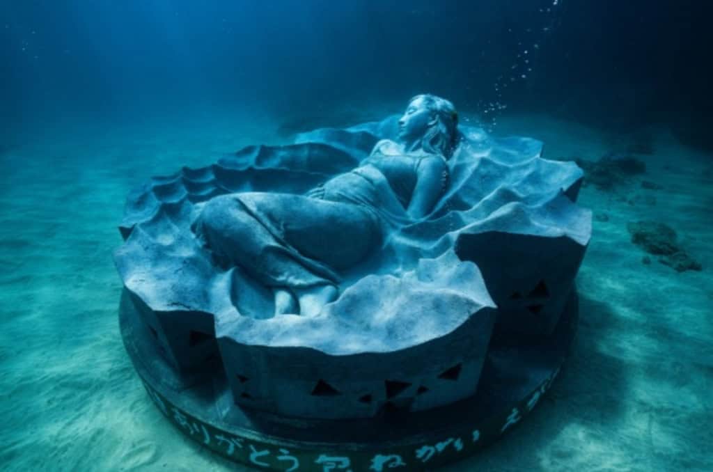 A primeira escultura submarina do Japão foi apresentada oficialmente no último dia 14 de outubro. Chamada “Ocean Gaia”, a obra representa um retrato em grande escala da modelo japonesa Kiko Mizuhara.