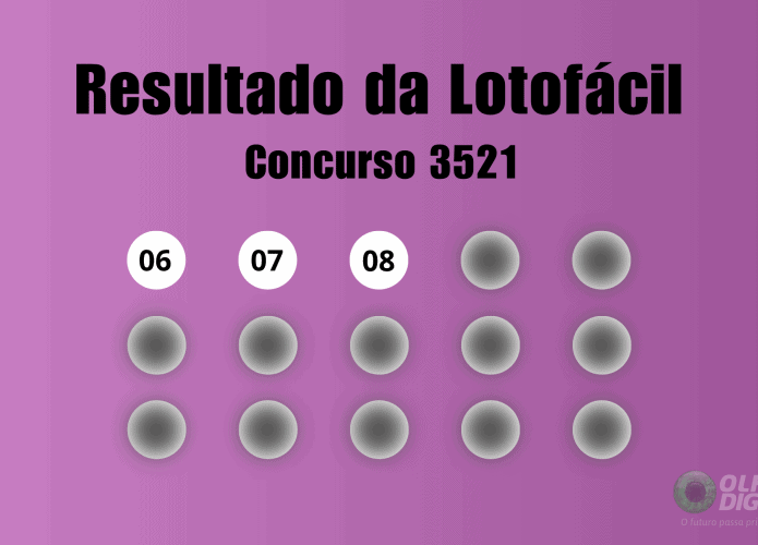 Os números sorteados da Lotofácil 3521 foram: 06 – 07 – 08 – 09 – 10 – 11 – 12 – 13 – 14 – 15 – 19 – 20 – 21 – 22 – 23.