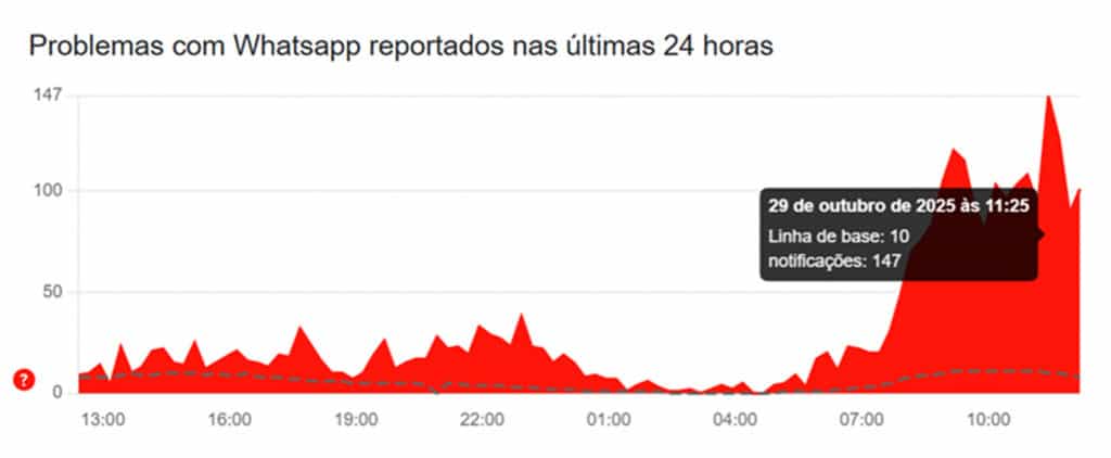 O Downdetector, plataforma que monitora o funcionamento de sites e aplicativos, registrou aumentou nas queixas por volta das 7h25 (horário de Brasília). O pico aconteceu às 11h25, com 147 reclamações.