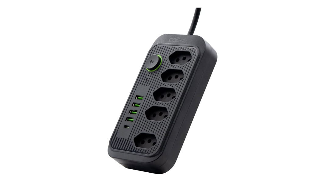 Régua de Energia com 5 Tomadas e 5 Portas USB (incluindo Tipo-C)