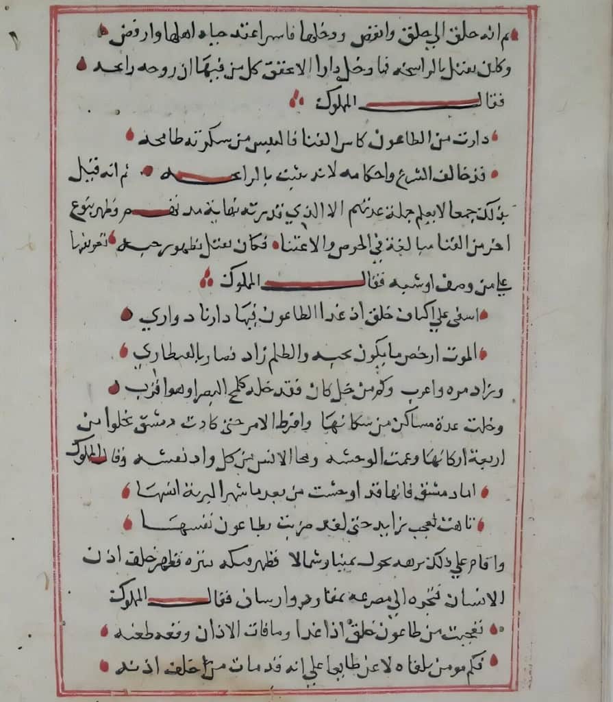 Em seu conto, Ibn al-Wardi personifica a peste como um criminoso viajante, que – ao longo de 15 anos – dizima uma região após a outra, se deslocando pela China, Índia, Ásia Central, Pérsia e, finalmente, entrando no Mar Negro e no Mediterrâneo para causar estragos no Egito e no Levante.