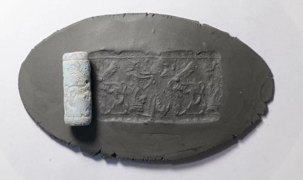 O selo cilíndrico recuperado – instrumento utilizado para autenticar documentos e mercadorias – indica a existência de sistemas administrativos sofisticados, enquanto o pingente de ouro reflete o acesso a metais preciosos e a manifestações de estatuto social numa comunidade até agora considerada periférica.