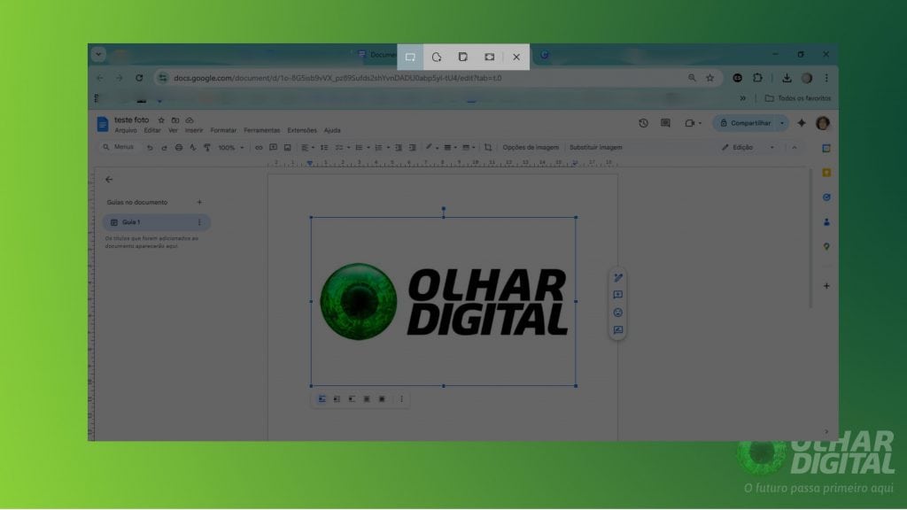 Esse método não mantém a qualidade original da imagem, mas é útil em casos rápidos ou quando o menu do Google Docs não permite outras ações.