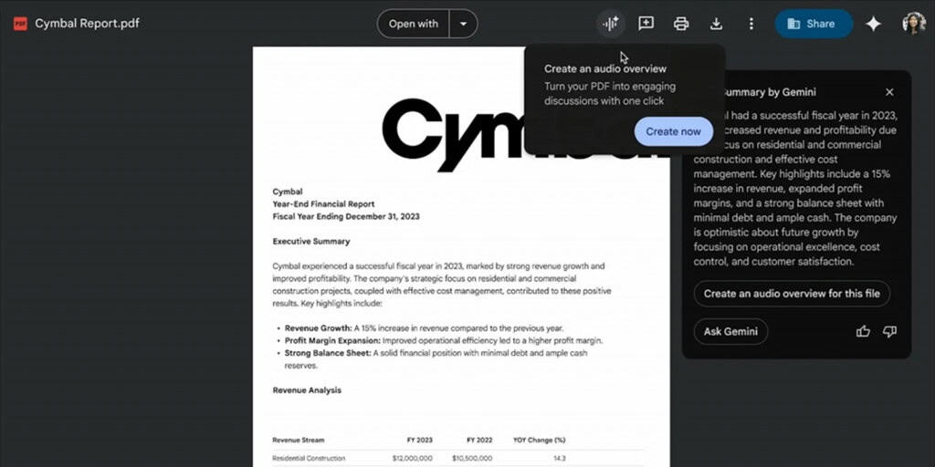 O recurso é uma extensão do Gemini dentro do Google Drive e funciona em arquivos PDF. Ao abri-lo, o usuário precisa clicar no botão “Visão Geral de Áudio” na barra superior da página e, depois, em “Reproduzir”.