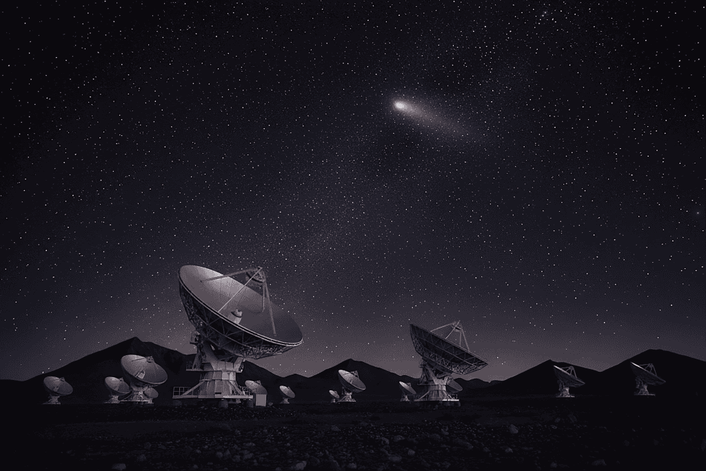 Enquanto isso, o 3I/ATLAS segue sendo monitorado. Recentemente, o radiotelescópio sul-africano MeerKAT detectou moléculas de hidroxila (OH) na atmosfera do cometa – um sinal claro de liberação de água por superaquecimento.