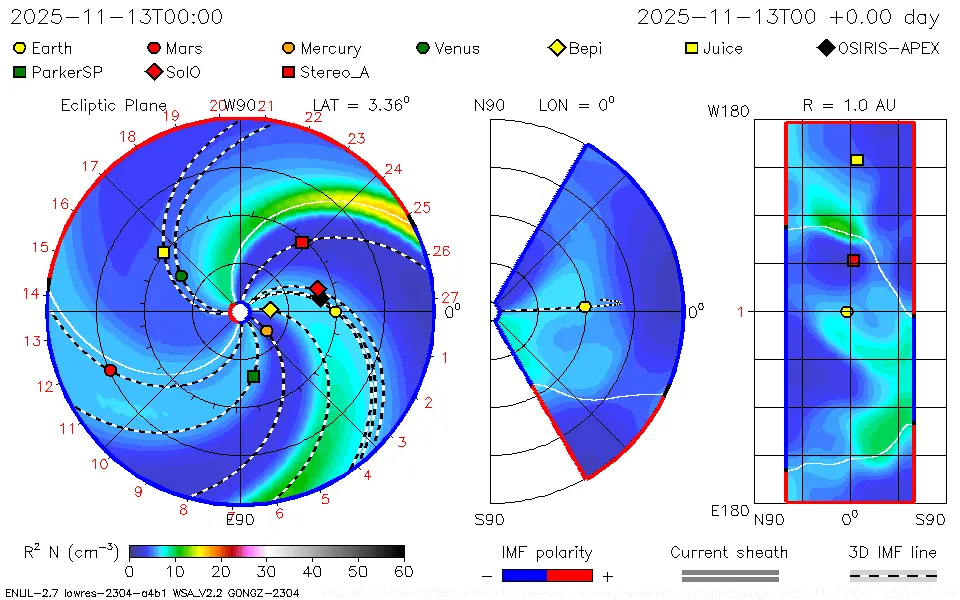 De acordo com a plataforma de monitoramento do clima espacial EarthSky.org, o grupo de manchas solares AR4274 continua sendo a região mais preocupante. Mesmo com uma leve redução nas manchas periféricas, a principal cresceu e mantém condições para gerar explosões moderadas ou até fortes.