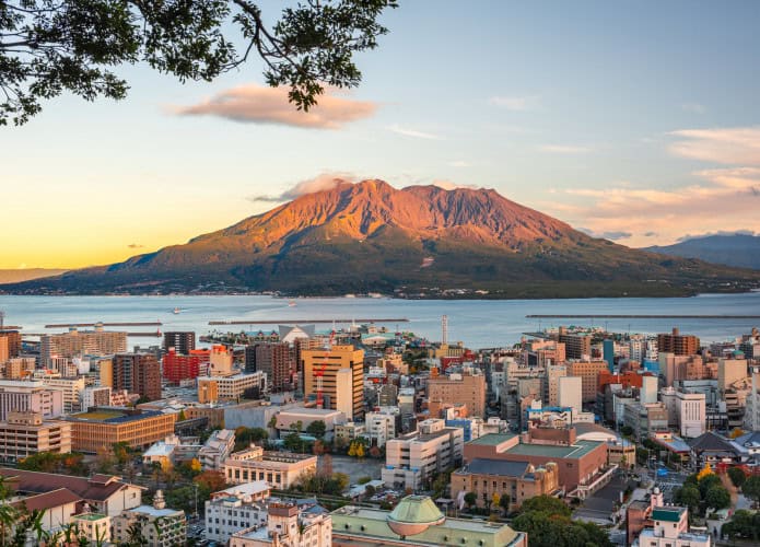 Com 1.117 metros de altura, o vulcão faz parte do Parque Nacional Kirishima-Kinkowan. Sakurajima está ligado à Península de Osumi, em Kyushu, a principal ilha do sudoeste do país. Foi uma ilha por anos, mas um fluxo de lava criou uma ponte terrestre ligando-a ao continente em 1914.