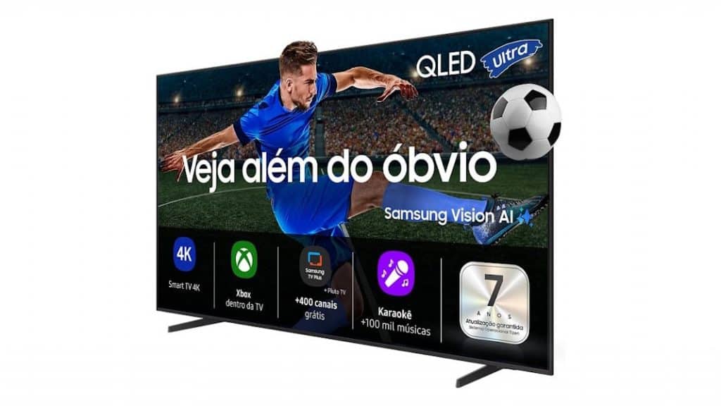 O processamento fica por conta de um chip com inteligência artificial, responsável por ajustar a imagem em tempo real e fazer o upscaling de conteúdos que não estão em 4K. Essa IA também é usada em funções de reconhecimento na tela e em recursos que fazem parte da linha Vision AI. O conjunto trabalha para otimizar a experiência de vídeo de forma automática.